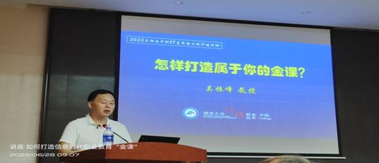 6月28日上午,湖南大众传媒职业技术学院吴振华教授围绕着怎样打造属于你的金课展开了讲座,他先后从什么是金课,金课的特征,为什么要开发金课,怎样开发金课,课程案例分析几个部分为我们学员作了深入地分析和精彩的讲解。尤其是“怎样开发金课”和“课程案例分析”的讲解对我们学员很有帮助,学员的学习兴致也很高。同时,吴振华教授在课中与学员积极交流,为我们学员解决在自己的教学中出现的难题提出了很好的建议。