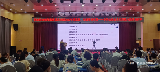 7月3日上午,在熊老师的隆重介绍下,司法警官职业学院何海洋教授上了一堂优秀的培训课,他与所有学员就2021年全国职业院校技能大赛教学能力比赛进行了经验分享与交流,然后由眭婧敏老师就教学能力比赛课程设计中遇到的一些问题与解决这些问题的方法与经验跟大家做了详细的分享。